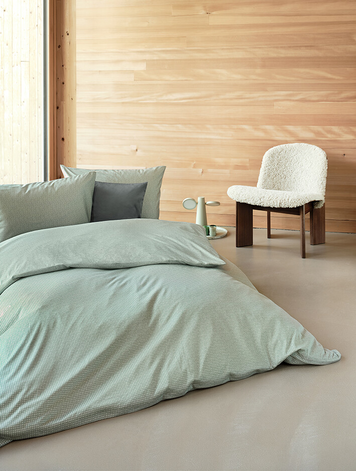 Avec ce jersey interlock de qualité supérieure, vous apportez fraîcheur et légèreté dans votre chambre à coucher. Le dessin particulièrement doux dans la couleur tendance sauge est fabriqué à 100% en Suisse.